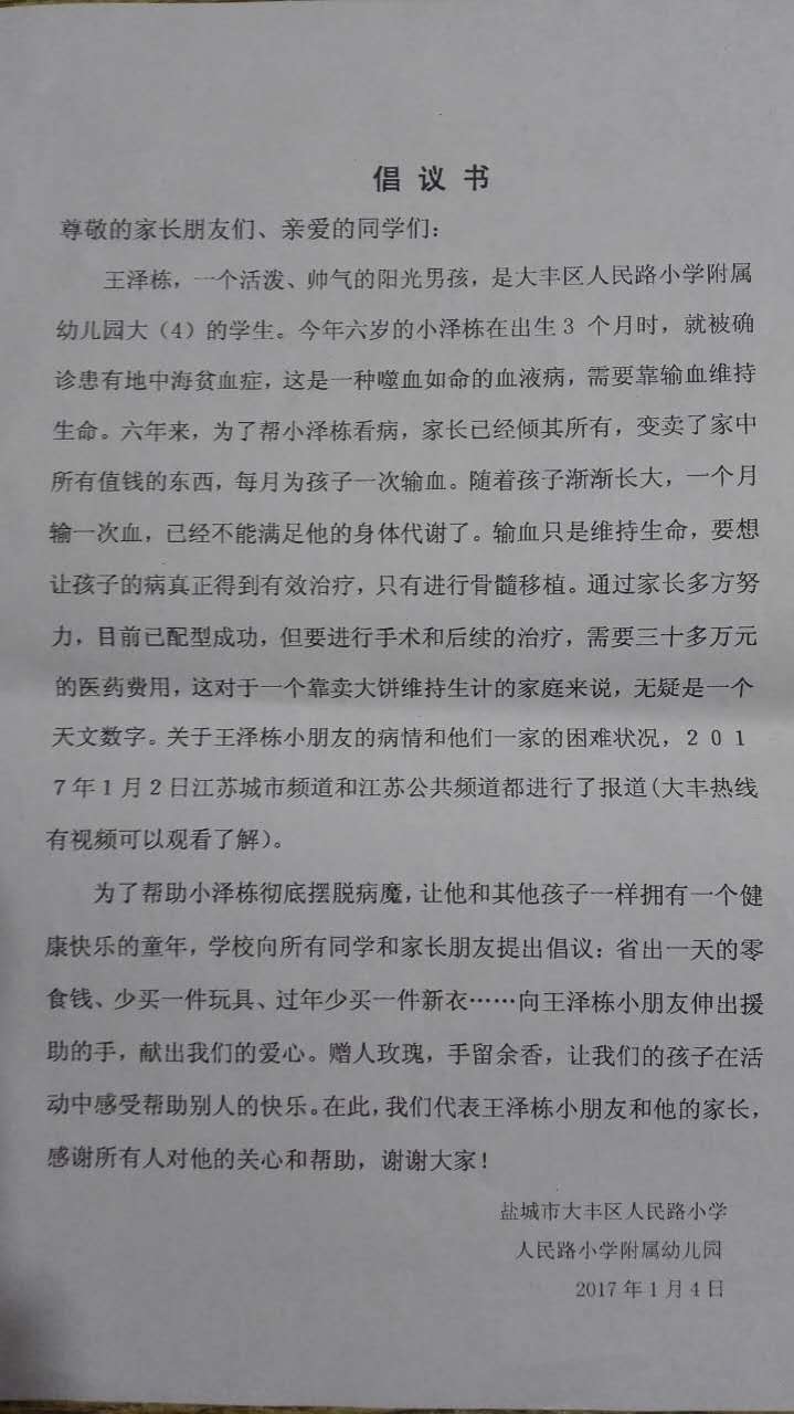 据王泽栋母亲方荣琼介绍,他老家在贵州,为了王泽栋在苏州看病方便,他们到大丰己经五年了,在大丰得到左邻右居和很多爱心人士无微不至的关心,现在自己已经把大丰作为自己的家了。
