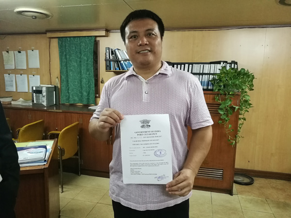 目前货船已经紧急办理好离港手续。印度时间3号晚上十点半,等港口涨潮时,“联合女神”号以及23名船员将离开港口,踏上回家的旅途。