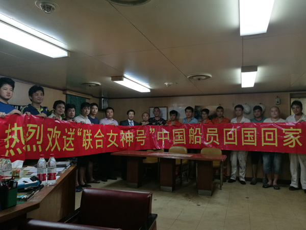 由于经济纠纷,在印度霍尔迪亚港滞留了60多天的江苏货船联合女神号以及23名船员终于要离港回国了。过去一个月来,经过中国驻加尔各答总领馆和江苏省特别工作组不断的努力和协调,今天孟买法院终于颁布了放船令。