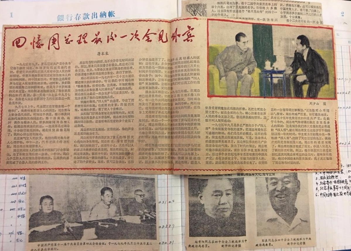 他首先拿出两本厚厚的、陈旧的剪报,翻到其中一页展示给大家。这是近40年前他从报纸上剪下的一篇文章——《回忆周总理最后一次会见外宾》。