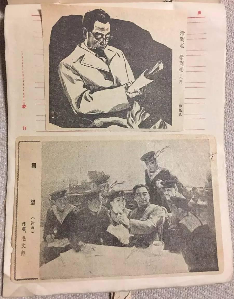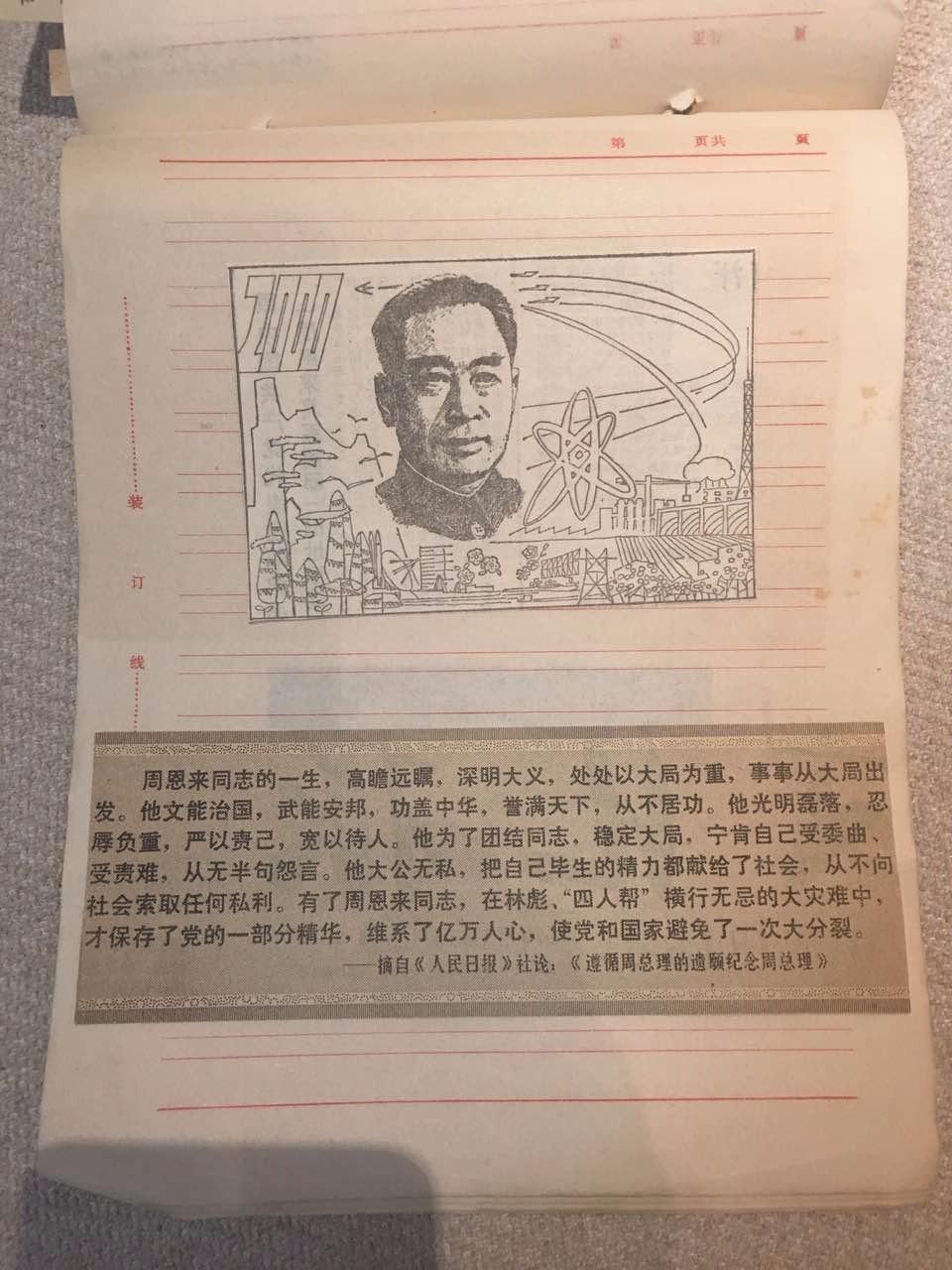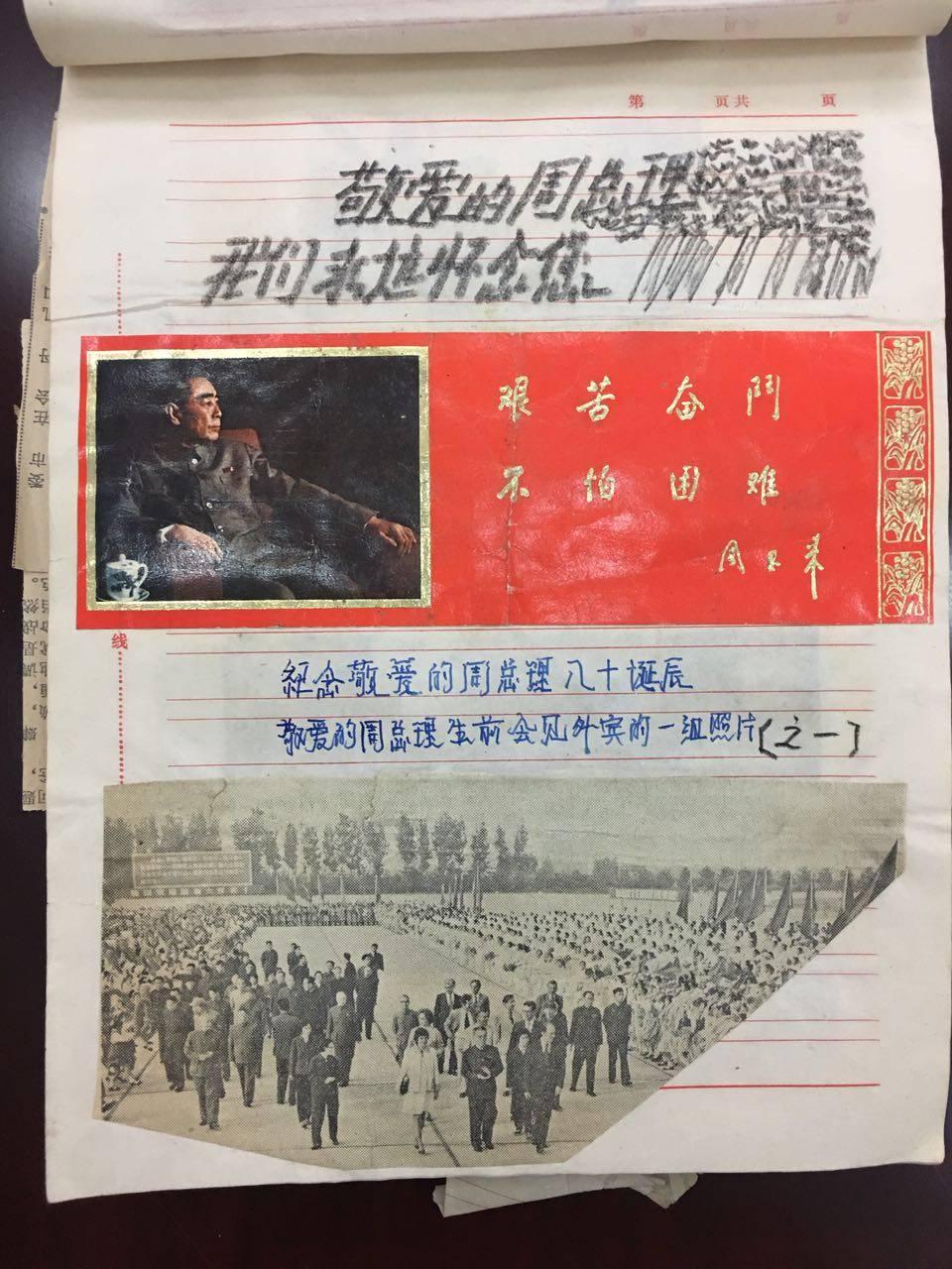 照片中《敬爱的周总理,我们永远怀念您》专栏等是辛总当年自己设计的,他小时候起就喜欢美术。