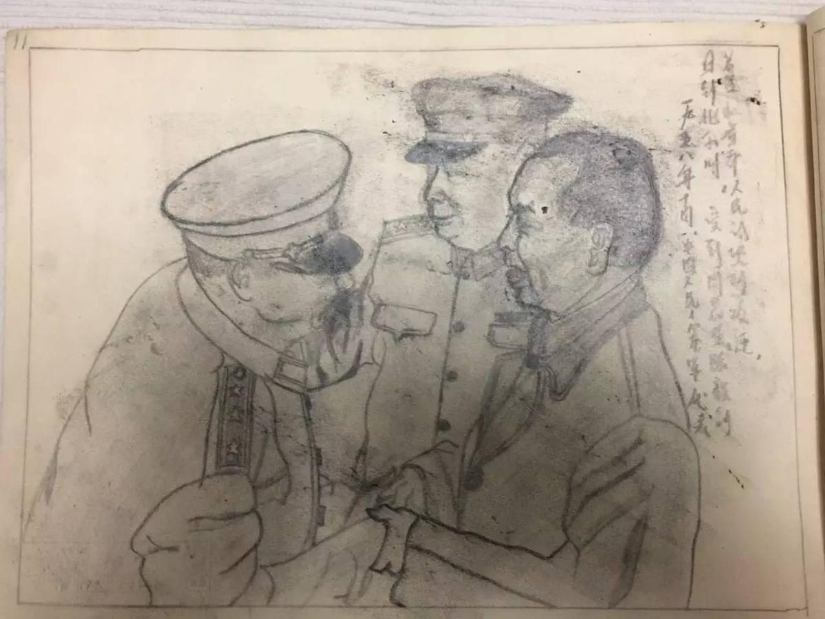辛广伟读小学时画的周总理与陈毅元帅接见军队代表