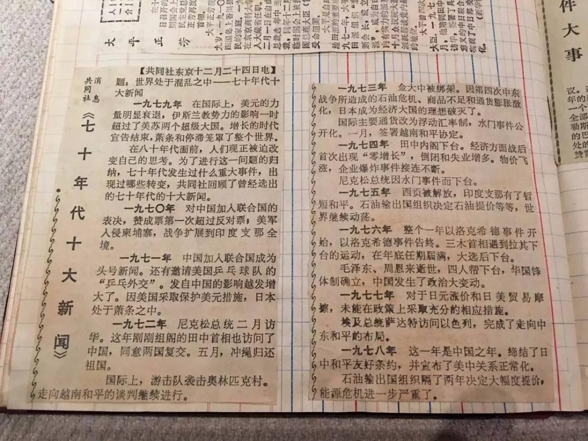 记者翻看发现,厚厚的剪报集除了周总理专题外,还有诸多专题与内容。其中时政主题最多。记者即兴选拍了几页内容。