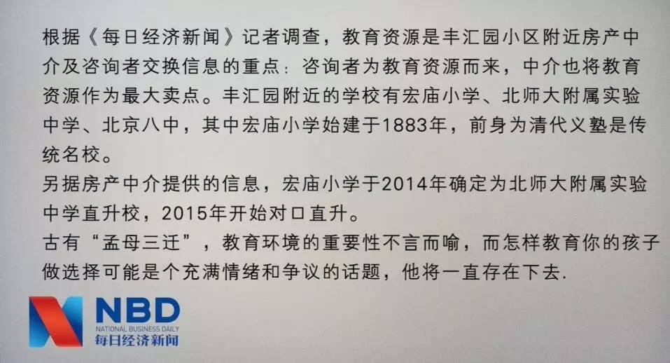 教育资源是丰汇园小区附近房产中介及咨询者交换信息的重点:咨询者为教育资源而来,中介也将教育资源作为最大卖点。