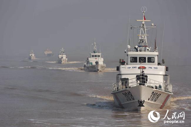 人民网上海2月28日电 为确保“两会”期间上海海域安全稳定,上海海警进行为期一周的海上编队训练。
