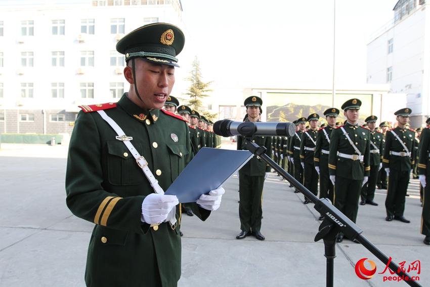 在现场,即将奔赴执勤一线的全体官兵身着执勤礼服整齐列队,精神昂扬英姿挺拔,在庄严的国歌声中面向国旗举拳宣誓,表达军人必胜决心。最后,随着出征命令下达,官兵们在《中国人民解放军军歌》的雄伟旋律中迅速蹬车,奔赴一线。