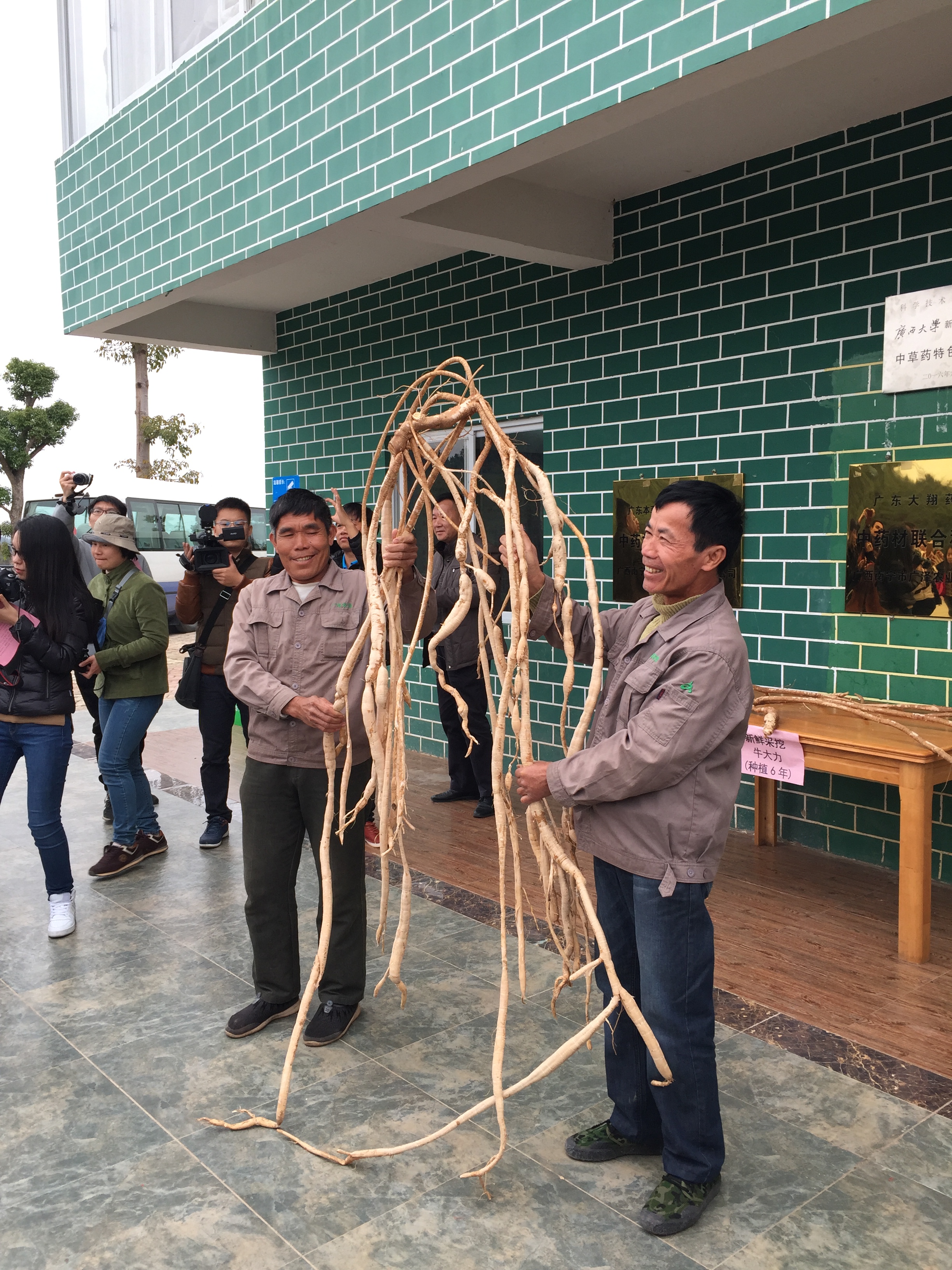 屯了村村民向记者们展示种植了六年的牛大力。