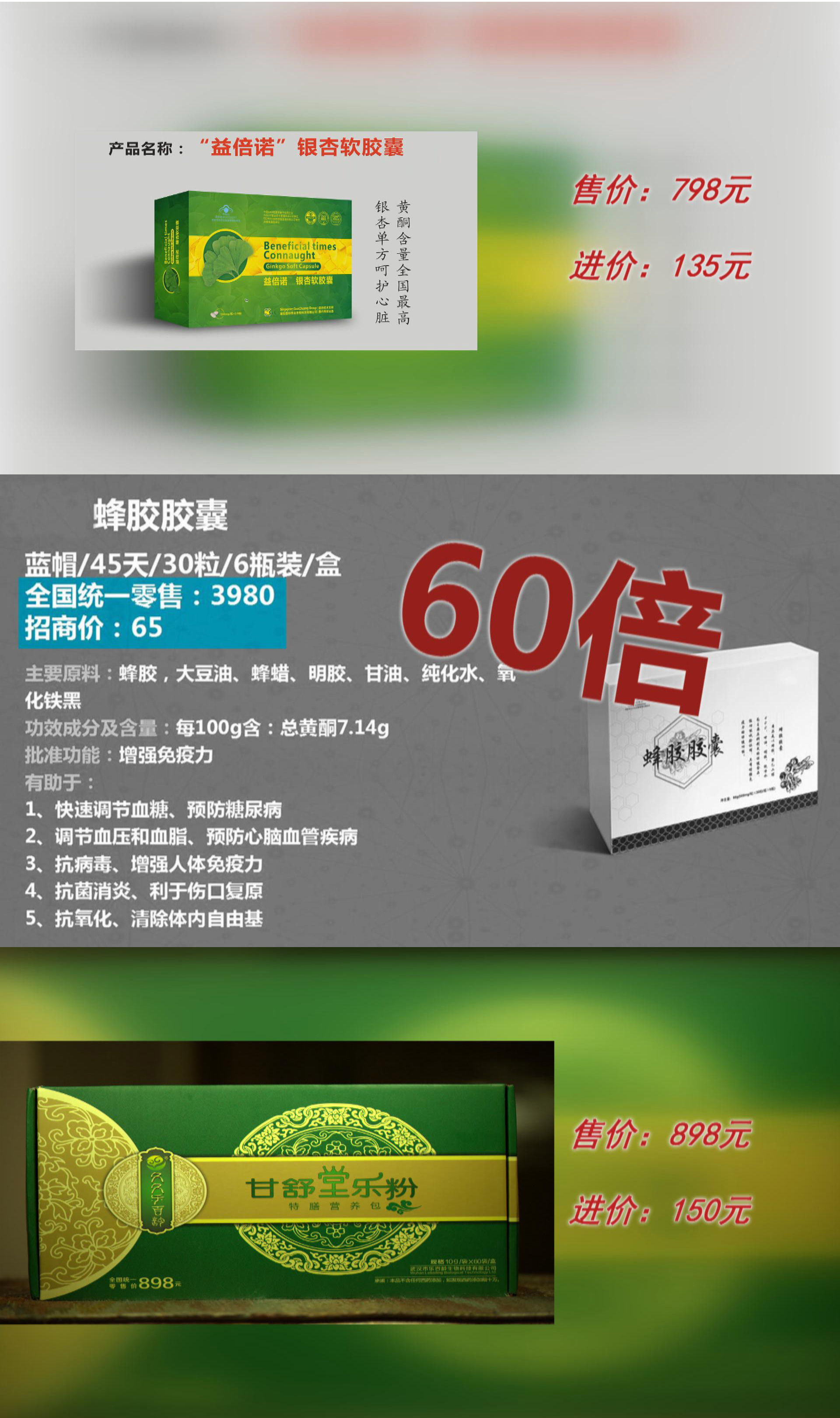 这些公司想尽办法让老人掏钱购买的保健品,能给他们带来多大利润呢?湖北国创伟业生物技术公司的每盒对外售价为798元的“银杏软胶囊”,进货价为135元;武汉乐百龄生物科技公司的每盒对外售价898元的“甘舒堂乐粉”,进货价为150元;安徽润九生物技术公司每盒对外售价3980元的蜂胶胶囊,进货价只有65元,利润高达60倍。