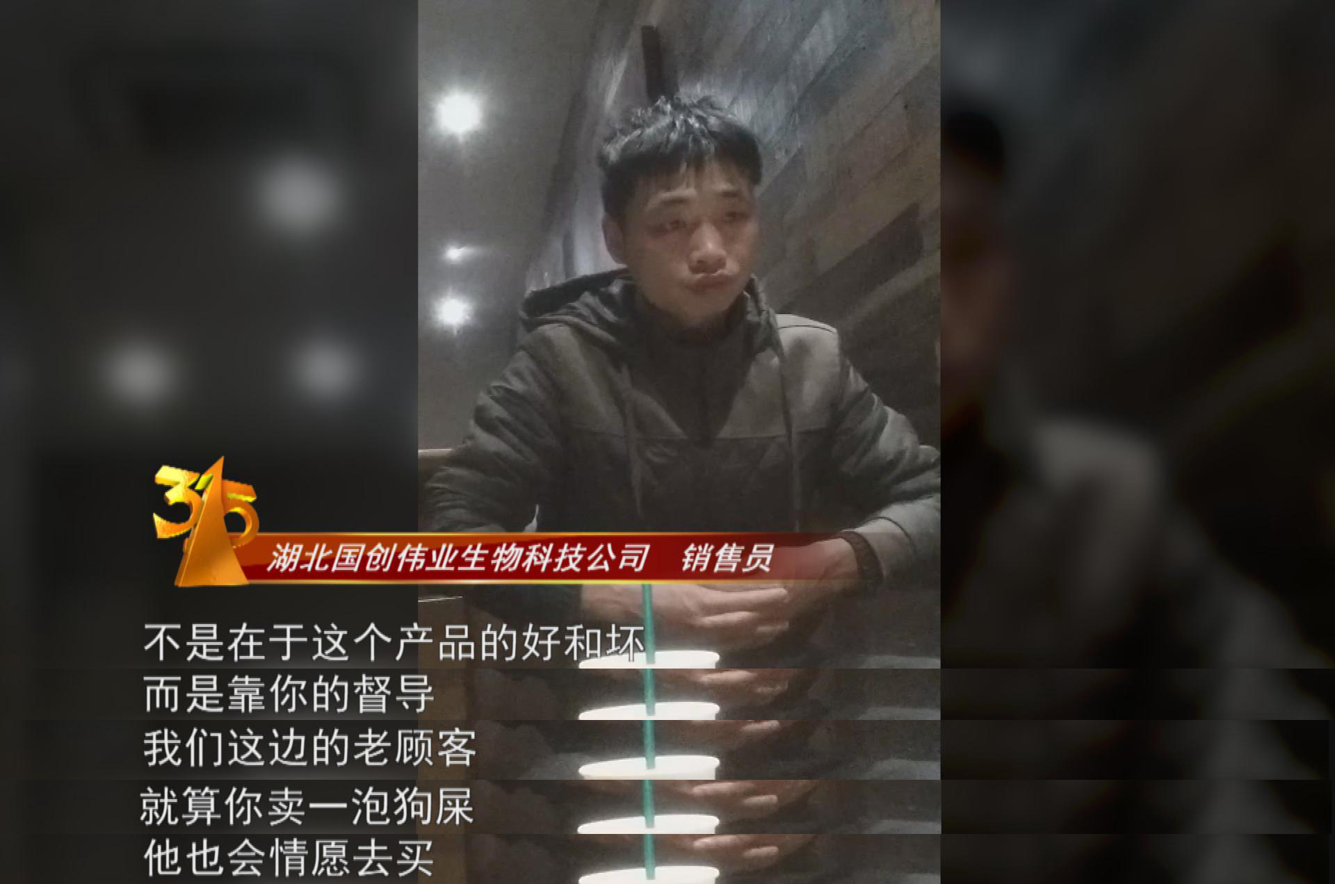 湖北国创伟业生物科技公司业务员?李业务员:一个产品能不能卖出去,不在于这个产品的好和坏,而是靠你的督导,靠你的业务员,说白了,我们这边的老顾客,就算你卖一泡狗屎,他也会情愿去买。