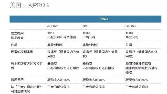 英美法系(指美国和英国)则一般采用自由竞争型的集体管理模式,一个领域内允许有两个或两个以上集体管理组织互相竞争。这一模式从制度上推崇竞争,强调集体管理组织之间以及著作权人与集体管理组织之间的竞争,同时辅之以适当的行政和司法介入。例如,美国有三大著作权集体管理组织(PROS):即ASCAP(美国作曲家、作家与出版者协会)、BMI(音乐广播公司)和SESAC(欧洲戏剧作家和作曲家协会)等。其优点是市场准入的自由,可以有效遏制获得垄断地位的组织索获取高额许可费的行为。各机构为了获得竞争优势,也往往采取最有效的运作方式,尽力获取用户、降低成本,让权利人获得更多版税收入。