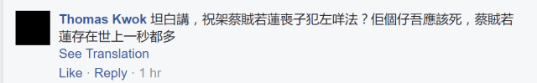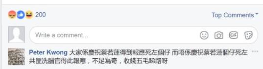 然而,大家千万不要低估了香港那群“港独”和极端反内地分子的下限。这不,就在香港主流民意都在斥责这个标语的同时,也有一些香港的“网络蛆虫”在高呼蔡女士死儿子“死得好”。