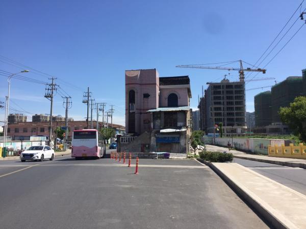 拆除开工前,不少路人在此建筑旁合影。一位路过中年女士对澎湃新闻记者表示,她每天开车路过此处,在这里总要特别留心,“这里发生过好几起车祸。”