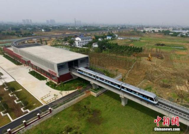 磁悬浮列车驶出长沙榔梨站(资料图)。中新社记者 杨华峰 摄