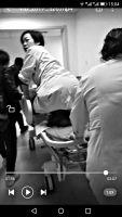 王新华立刻蜷曲着身子,半跪在小小的病床床尾一角,右手托举着产妇腹中的胎儿,尽量给脐带留出一些空间,减轻脐带受压程度。同时还一直安慰产妇:“不要害怕,我们都在!”