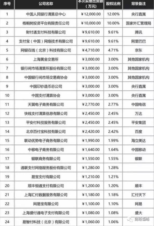 央行把第三方支付“收编了”,下图是网联公司的股东名单: