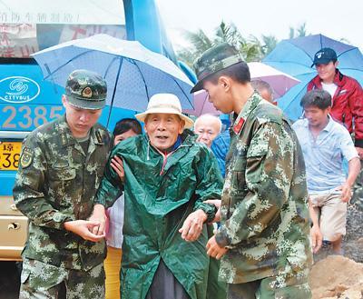 图为15日,海口组织群众转移。海口市委宣传部供图