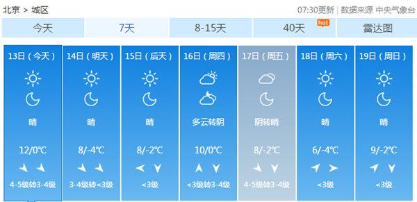 中国天气网讯 受新一股冷空气影响,今天(13日),北京将出现五级左右的北风,阵风七级,最低气温只有0℃。公众出行需注意防风保暖。